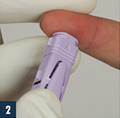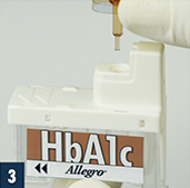 Lance finger to obtain blood drop.